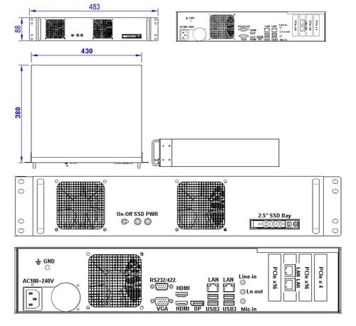 Dimensions (W x H x D): 483 x 88 x 380 mm